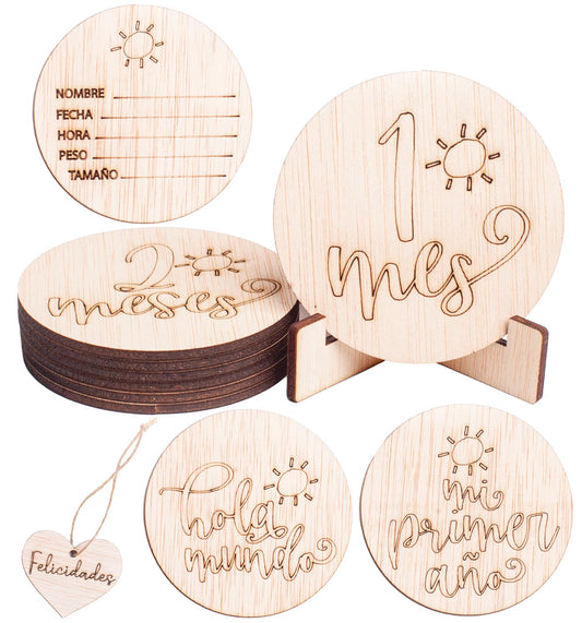 Olesea Tarjetas cumple meses bebe madera español. Carteles tarjetas cumplemeses bebe primer año español Regalos originales padres primerizos bebes recien nacidos (Meses)