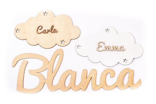 Placa Personalizada Nube Infantil con Nombre Regalos de Madera Personalizados. Letrero de Madera Adhesivo para Habitación Niño/a Bebé. Nombres decorativos infantil Olesea