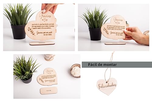 - ✅ INCLUYE UN SOPORTE DE MADERA: La tarjeta incluye una base para que puedas decorar tu salón, cocina u oficina con este corazón de madera y sus bonitas frases.