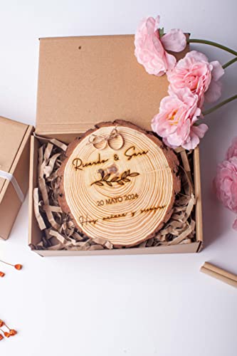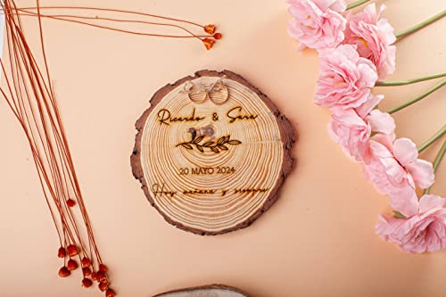 Porta Alianzas Personalizado - Porta Anillos Boda - Detales de Boda Personalizados Porta anillos de boda grabado en madera Olesea