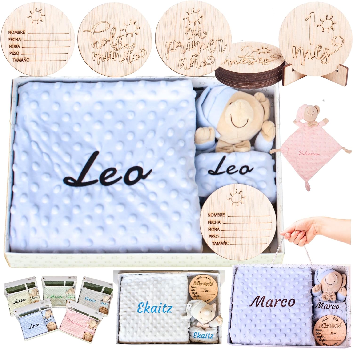 - ✅ 【Set completo para bebé: manta + dou dou + placas cumplemes】 Todo lo que necesitas para un regalo especial: manta personalizada con nombre bordado, dou dou y 12 placas de madera para seguir el crecimiento mes a mes.